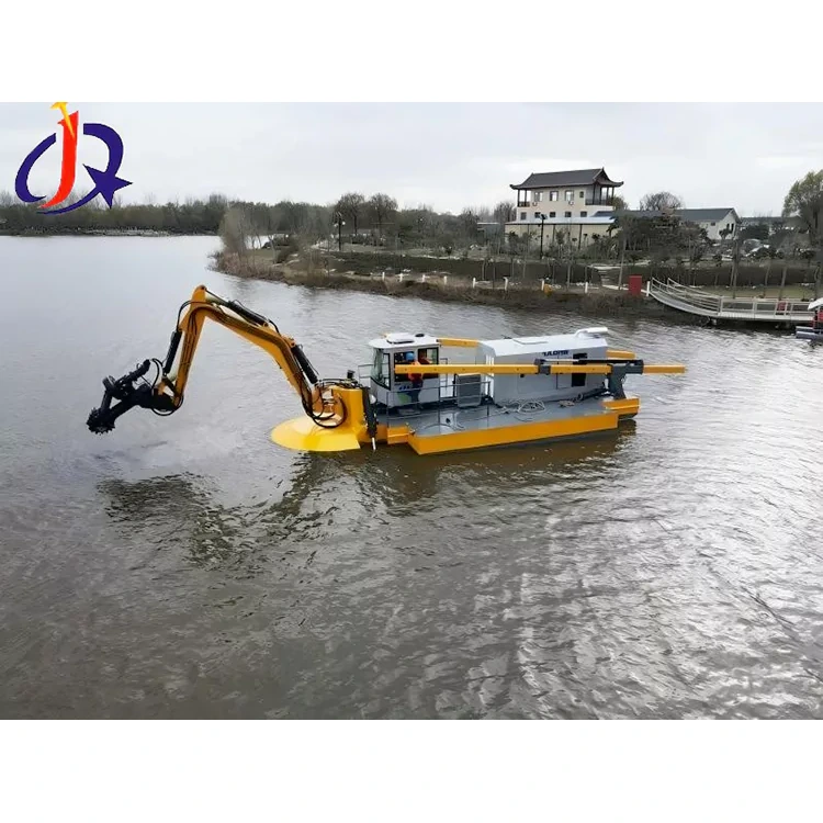 Pemanenan Gulma Perairan dan Pengambilan Puing: Dilengkapi dengan garu pengumpul atau ember, alat ini secara efisien membersihkan vegetasi air, puing-puing yang mengapung, dan lumpur kolam sedimentasi industri.