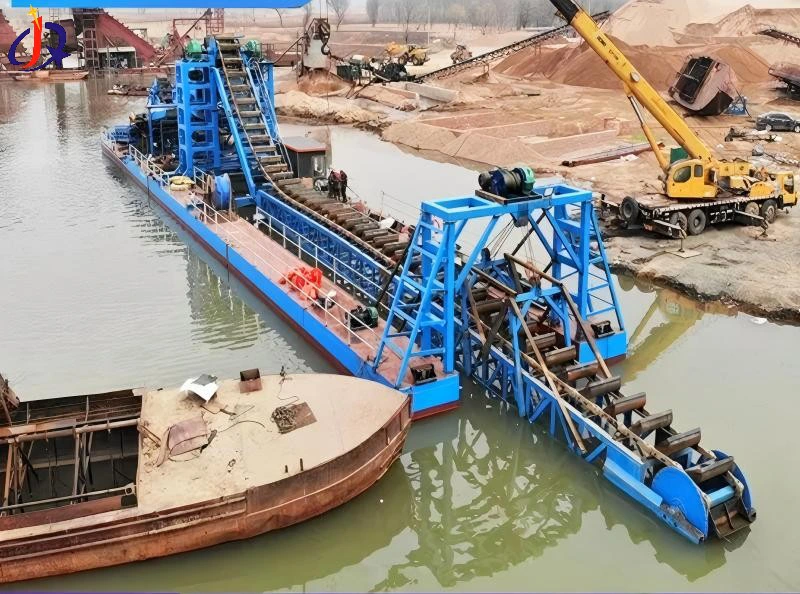 Terdiri dari bucket rantai, rantai, lengan bawah air, dan motor penggerak, sistem ini menggunakan motor hidrolik untuk menghasilkan torsi tinggi, memungkinkannya menghancurkan batu bulat dengan diameter ≤300 mm dan terus menerus menggali campuran pasir-kerikil.